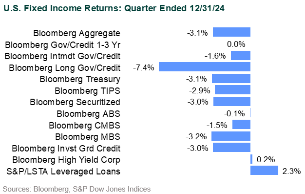 The U.S. bond market faced challenges across most sectors in 4Q but closed out the year primarily positive. Non-U.S. fixed income returns varied greatly depending on currency exposure.